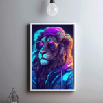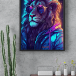 Aslan este surprins într-o ținută elegantă, inspirată de stilul retro, purtând o pereche de ochelari de soare care adaugă un aer de nonșalanță și mister. Postura sa degajată și combinația rafinată de detalii sugerează un personaj care emană stil și încredere. Acest tablou captează farmecul atemporal și charismatica unui spirit liber, aducând o notă de nostalgie sofisticată în orice spațiu.
