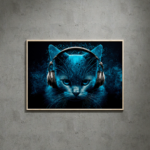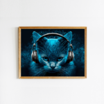 Cu o privire misterioasă și plină de curiozitate, purtând căști moderne, simbolizând conexiunea perfectă între natura jucăușă și lumea tehnologică avansată. Culoarea albastră intensă îi conferă un aer aparte, iar căștile adaugă un strop de coolness și un vibe tech-savvy. Pisica pare să fie o adevărată expertă în tehnologie, complet în pas cu timpurile moderne, dar păstrându-și în același timp farmecul său natural.