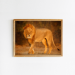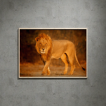 Acest tablou surprinde un leu în profil, cu o privire intensă și directă către obiectiv, emanând o putere necontestată. Ochii leului strălucesc cu o expresie de înțelepciune și curaj, în timp ce întregul tablou transmite un sentiment de autoritate și libertate. Perfect pentru a adăuga o notă de magnificență și energie într-un spațiu de birou, living sau sală de întâlniri.